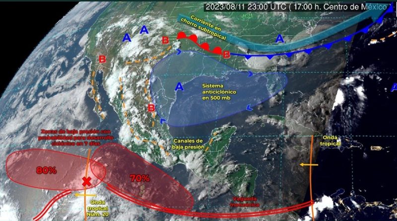La Unidad Estatal de Protección Civil (UEPC) del Gobierno del Estado de Colima exhorta a la población a mantenerse informada de las condiciones climáticas, pues durante esta noche y madrugada del sábado 12 de agosto, canales de baja presión en el interior del país, sureste mexicano y Península de Yucatán, ocasionarán lluvias puntuales fuertes en Colima, Zacatecas, Aguascalientes, Nayarit, Michoacán, Guanajuato, Estado de México, Ciudad de México, Tlaxcala y Morelos.