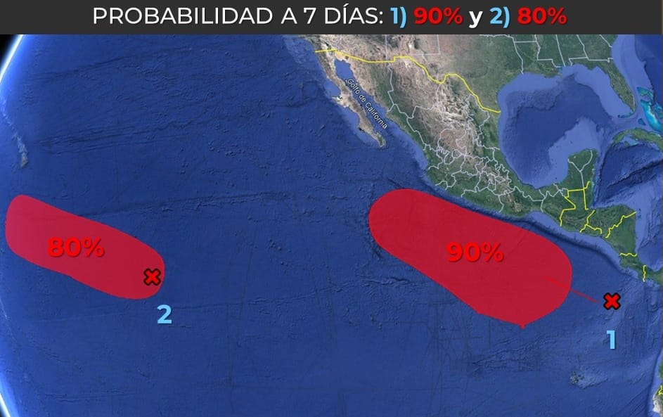 Así mismo, se estima que en el estado de Colima puedan registrarse temperaturas máximas de 40 grados Celsius, lo mismo para Baja California Sur, Nayarit, Jalisco, Michoacán, Guerrero, Oaxaca, Chiapas, Durango, Zacatecas, San Luis Potosí, Veracruz, Hidalgo (norte), Puebla (norte), Morelos, Tabasco, Campeche, Yucatán y Quintana Roo.