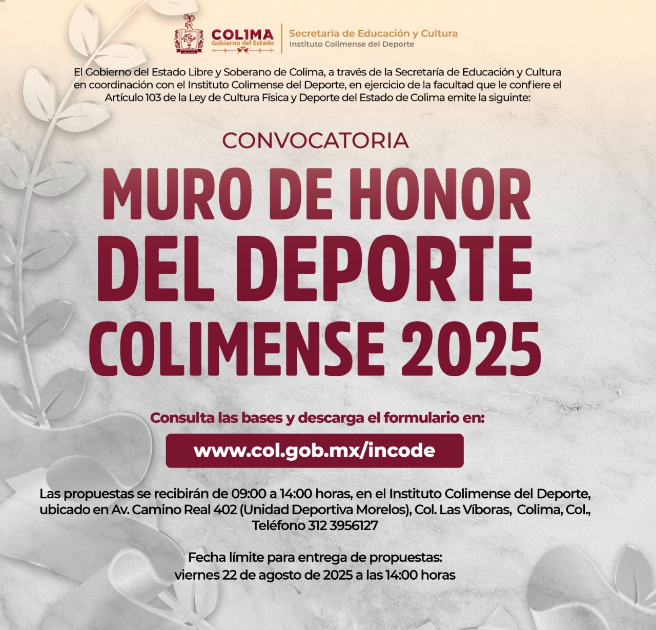 Convocatoria al muro de Honor del Deporte Colimense cierra el 22 de agosto: Incode
