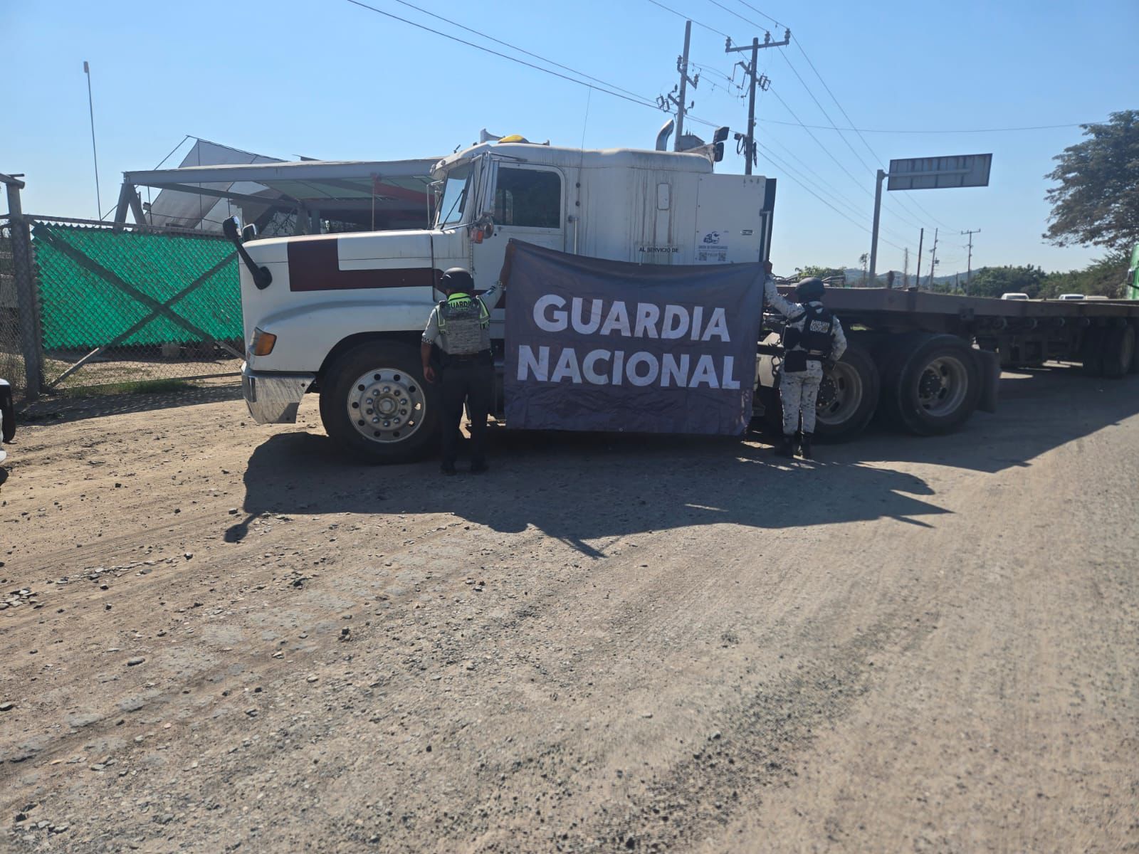 La Coordinación Estatal de la Guardia Nacional informa que tras un reporte del Centro de Coordinación, Control, Comando, Comunicación, Cómputo e Inteligencia (C5i), se tuvo conocimiento de un tractocamión color blanco doblemente articulado con placas 615DN4 que tenía reporte de robo, el cual fue detectado al circular por la citada vía.