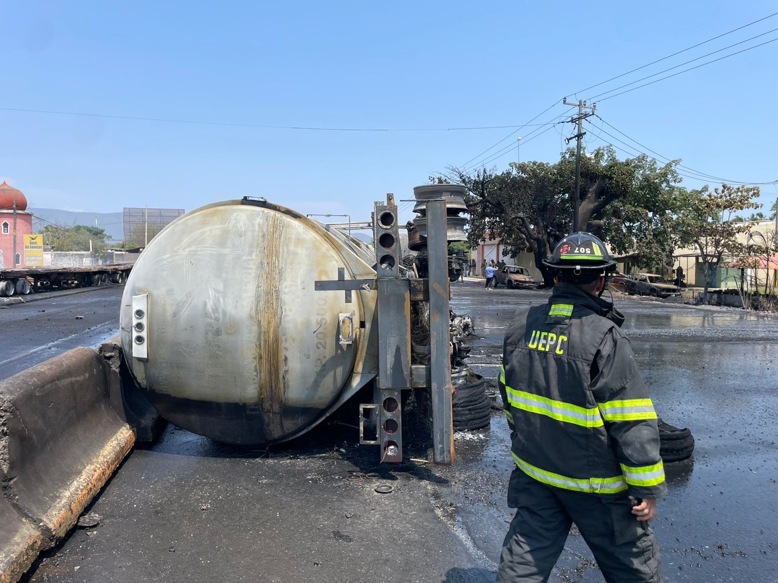 Aunque ya no existe riesgo, en el lugar continúan las labores de enfriamiento por parte de los diferentes cuerpos de emergencia, entre ellos Bomberos de Tecomán y Protección Civil de Armería, apoyados por la Unidad Estatal de Protección Civil.