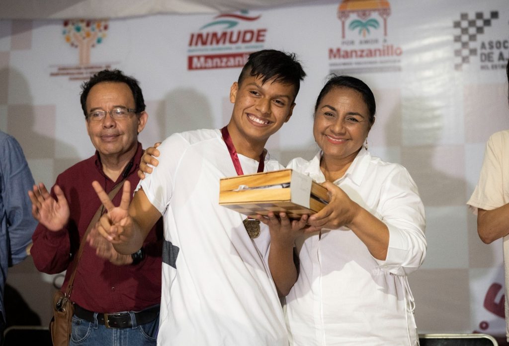 La presidenta municipal de Manzanillo, Griselda Martínez, encabezó la ceremonia de premiación, acompañada por los directores: Luis Valdivia Ochoa, Carlos Lenin Cázares, Verónica Vicente, la Secretaria del Ayuntamiento Martha Zepeda, el Tesorero, Lalo Camarena y Giovanni Bravo Sandoval, Árbitro Oficial del evento y representante de la Federación Estatal de Ajedrez.
