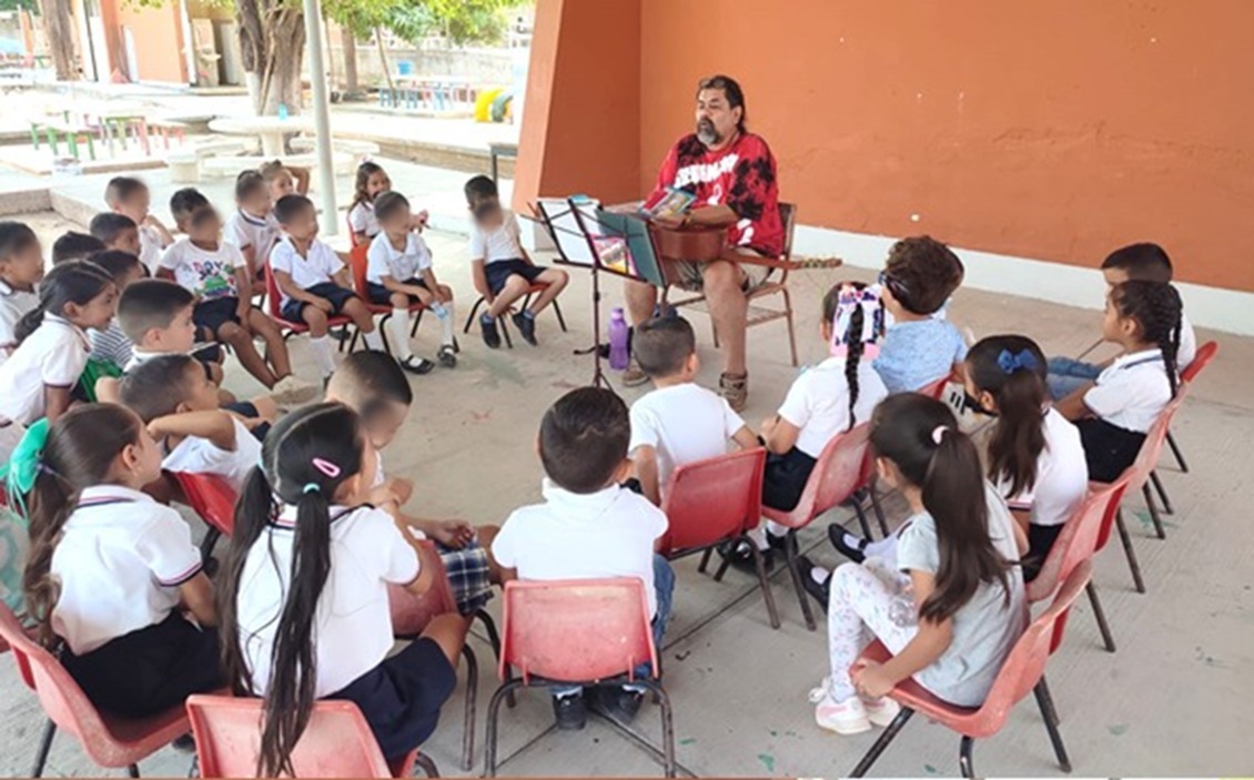 Más de un centenar de alumnas y alumnos, junto al personal docente de cuatro planteles educativos, han disfrutado de divertidas canciones, cuentos y leyendas tradicionales de Colima, en voz de Gabriel Martínez Campos “El Gabo”, enlace del Programa Nacional de Salas de Lectura en esta entidad, en coordinación con la Supervisión de Escuelas de Preescolar de la Secretaría de Educación y Cultura.