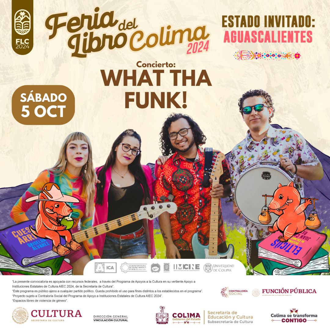 A las 5:00 de la tarde las actividades se trasladan al Teatro Hidalgo para que las familias colimenses disfruten del espectáculo literario ‘Negro de Liliana Bodoc’, con la participación del cuentacuentos venezolano Romerypunto y la violonchelista y compositora Paola Rodríguez. Ahí mismo a las 7:00 de la tarde, el caricaturista mexicano Trino ofrecerá el conversatorio ‘El arte de los moneros’. La jornada concluirá en el escenario principal con los conciertos de What tha Funk y Flor de Jade.
