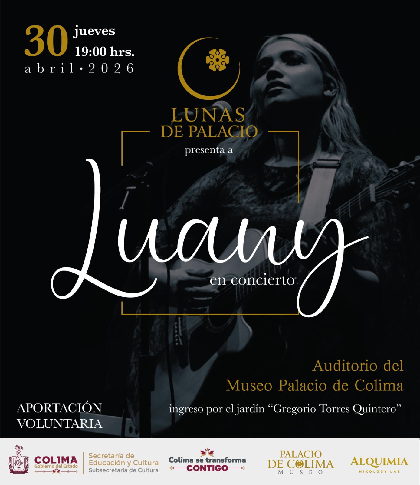 El programa de presentaciones artísticas ‘Lunas de Palacio’ de la Subsecretaría de Cultura del Gobierno del Estado de Colima que preside la gobernadora Indira Vizcaíno Silva sigue ofreciendo conciertos especiales en el Museo Palacio, contando con la participación de talentos locales y el jueves 30 de abril, será Luany la artista que llegará al escenario del auditorio María del Refugio Morales.