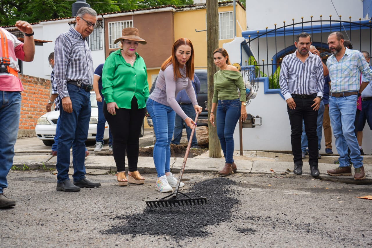 Villa de Álvarez, Col.- En la colonia Alfredo V. Bonfil Fovissste, Tey Gutiérrez Andrade, Presidenta Municipal de Villa de Álvarez, dio el banderazo de arranque al programa Operación Bacheo, parte de la campaña permanente de reparación de baches, que se intensifica ante las lluvias registradas en los últimos días.