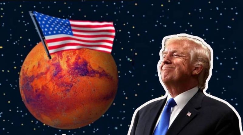 “Perseguiré nuestro destino manifiesto en las estrellas… Plantaré las estrellas y las rayas en el planeta Marte”.