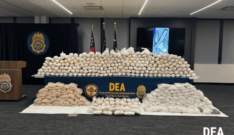La DEA detalló que «del 22 al 26 de septiembre de 2025, agentes de la DEA en 23 divisiones de campo nacionales y siete regiones extranjeras llevaron a cabo acciones de cumplimiento coordinadas que dieron como resultado: 670 arrestos, incautaciones de drogas por 92,4 kilogramos de polvo de fentanilo, un millón 157 mil 672 pastillas falsificadas, 6 mil 62 kilogramos de metanfetamina, 22.842 kilogramos de cocaína, y 33 kilogramos de heroína.