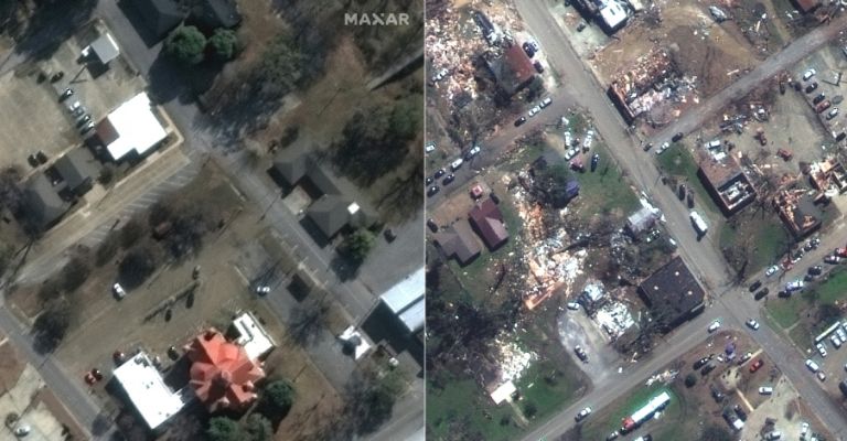 Desapareció un pueblo entero: el impactante antes y después de los tornados categoría 4 que devastaron el sur de EU