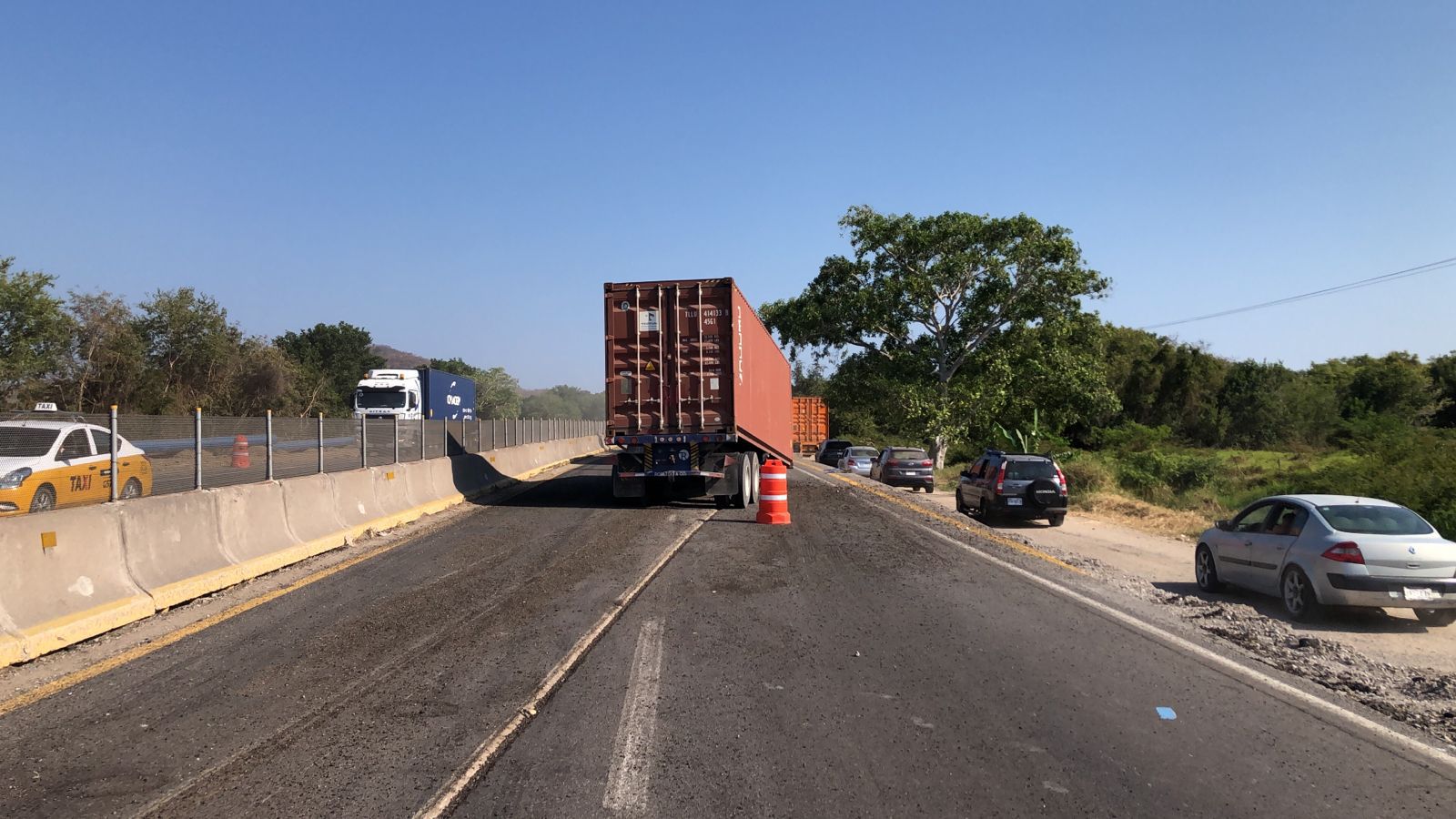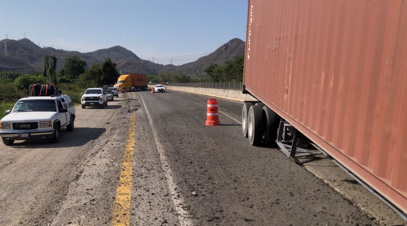 Desprendimiento de un contenedor provoca tránsito lento en la autopista Manzanillo-Colima; maneje con precaución