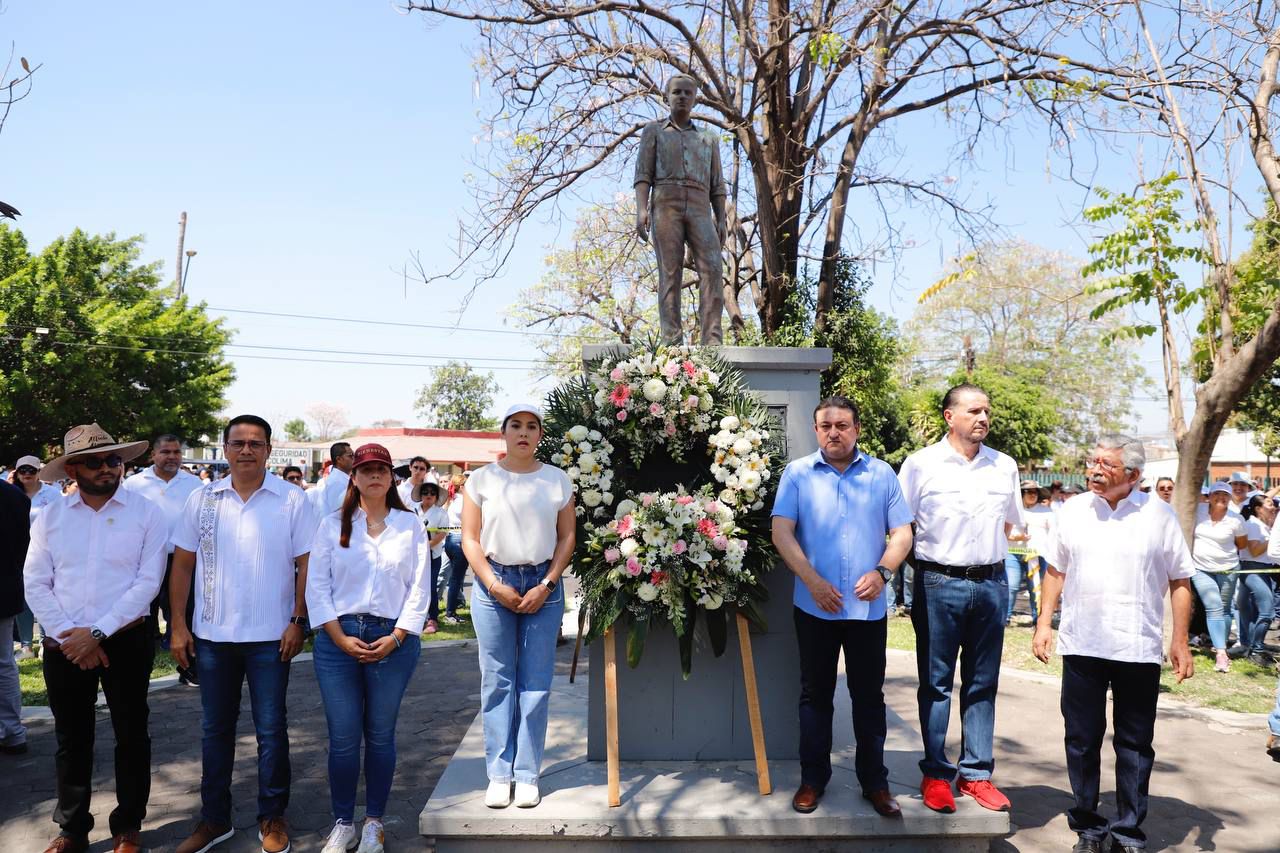 Tras la ceremonia, se colocó la ofrenda floral e hicieron las guardias de honor correspondiente a la estatua de José Pimentel Llerenas, quien fue un líder sindical y dirigente obrero, así como el personaje principal en la lucha por los derechos de las y los trabajadores, en la entidad.