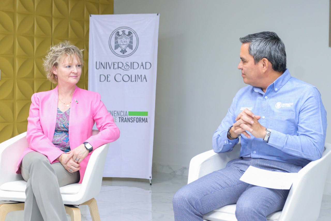 Este jueves, el rector de la Universidad de Colima, Christian Torres Ortiz Zermeño recibió la visita de la Cónsul General de Estados Unidos en Guadalajara, Eliza F. Al-Laham, con quien dialogó acerca de las áreas en las que pueden colaborar el consulado y esta casa de estudios.