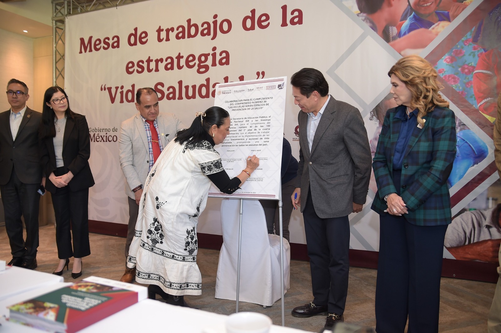 *Firma convenio para impulsar la sana alimentación de la niñez en escuelas de la entidad *Imparte charla sobre casos de éxito en comunidades colimenses
