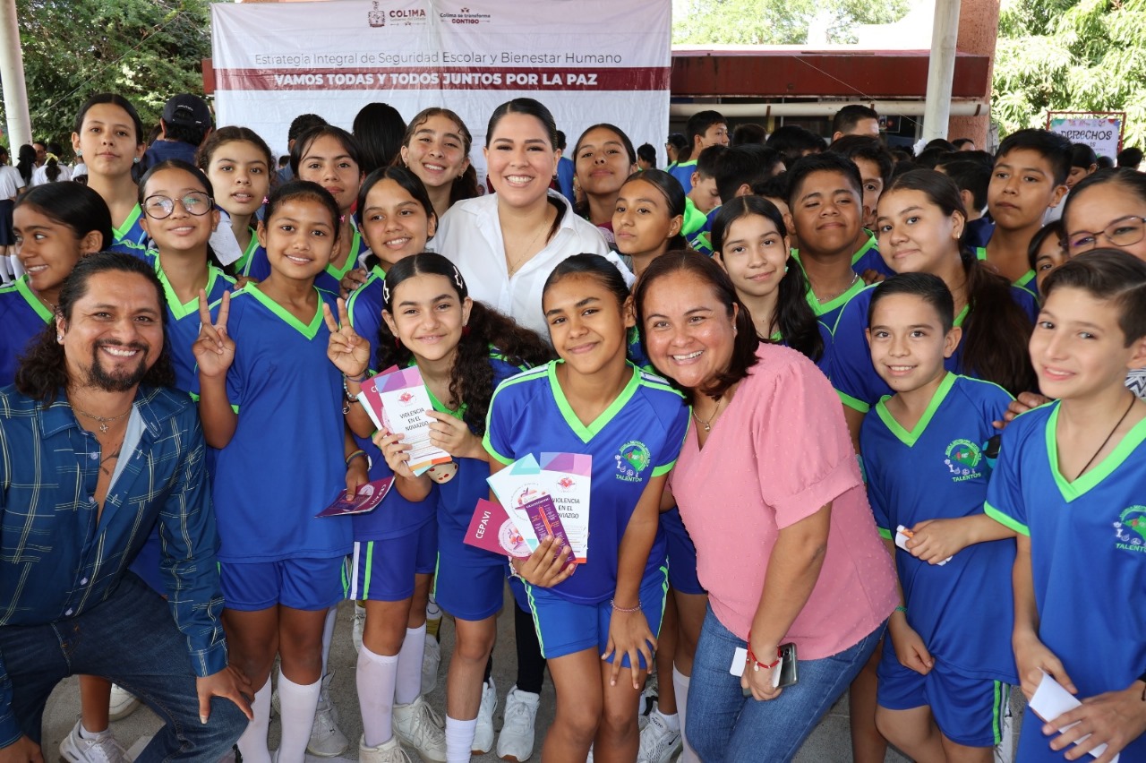 Con el propósito de promover la seguridad, la paz y el bienestar en las escuelas, el DIF Estatal Colima continúa con las Ferias Informativas de la Estrategia Integral de Seguridad Escolar y Bienestar Humano; el evento se llevó a cabo en la Escuela Secundaria Estatal No. 12 de Talentos, en Villa de Álvarez, un espacio clave para involucrar a la comunidad educativa en este esfuerzo por crear entornos más seguros y libres de violencia.