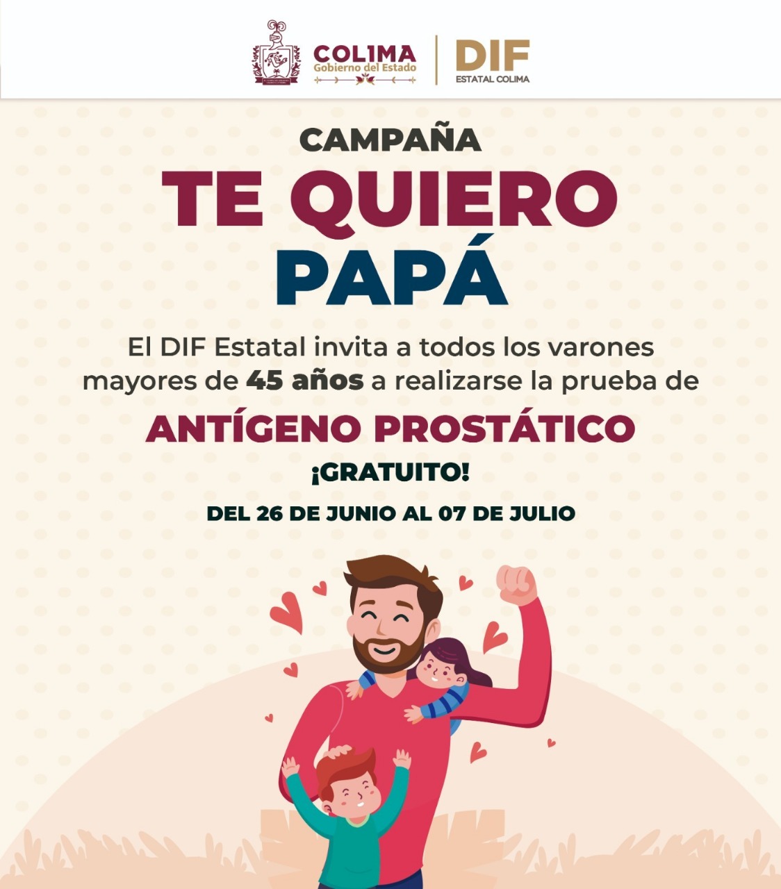 Con el objetivo de promover la cultura del autocuidado de la salud masculina y detectar de manera oportuna el cáncer de próstata, el Gobierno del Estado de Colima, a través del DIF Estatal, pondrá en marcha la campaña ‘Te Quiero Papá’, en beneficio de 600 hombres mayores de 45 años de los diez municipios de la entidad.