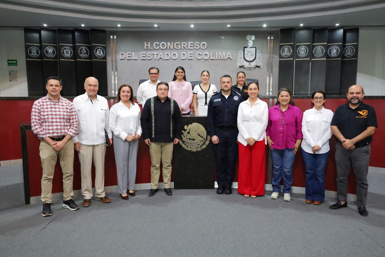 Diputadas y Diputados integrantes de los Grupos Parlamentarios de Morena, PT, PVEM, Nueva Alianza, PRI, PAN y MC, en el Congreso del Estado de Colima, sostuvieron una reunión de trabajo sobre el tema de seguridad, con los titulares de la Secretaría General de Gobierno, Eloy García Alcaraz y de la Secretaría de Seguridad Pública (SSP), Fabián Gómez Calcáneo.