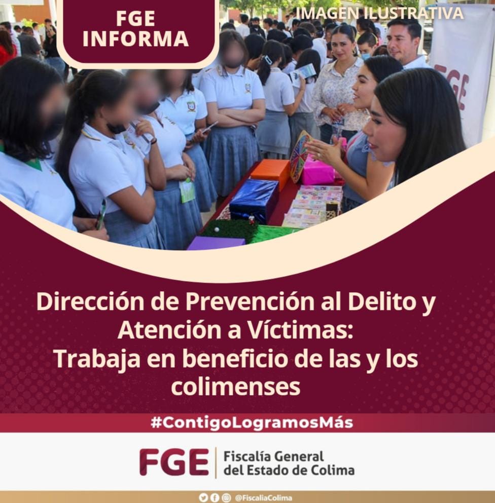 La Vicefiscalía de Justicia Familiar y Civil, Soluciones Alternas, Prevención al Delito y Atención a Víctimas de la Fiscalía General del Estado (FGE), por medio de su Dirección de Prevención del Delito continúa realizando acciones para prevención y procuración de la justicia a favor de las y los colimenses que fueron víctimas de algún delito.