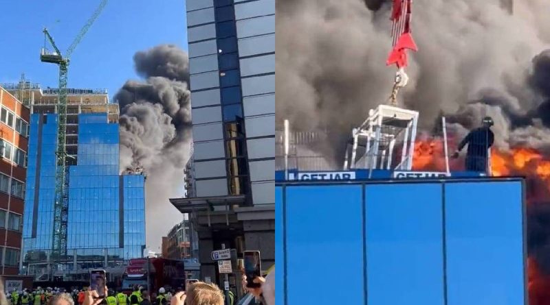 Dramático rescate de trabajador de un edificio en llamas en Reino Unido