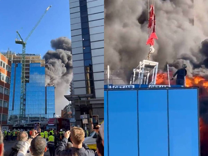 Dramático rescate de trabajador de un edificio en llamas en Reino Unido