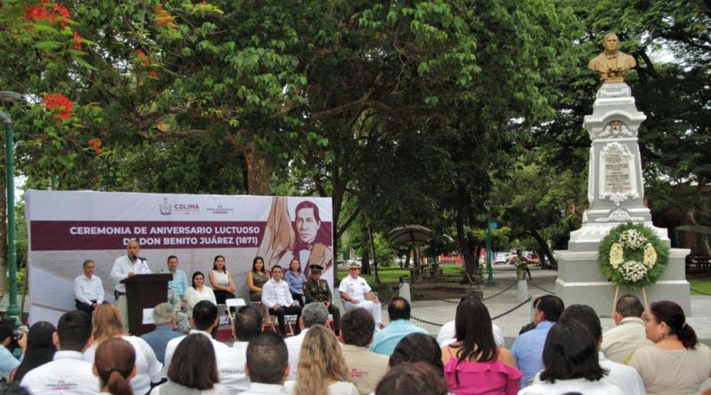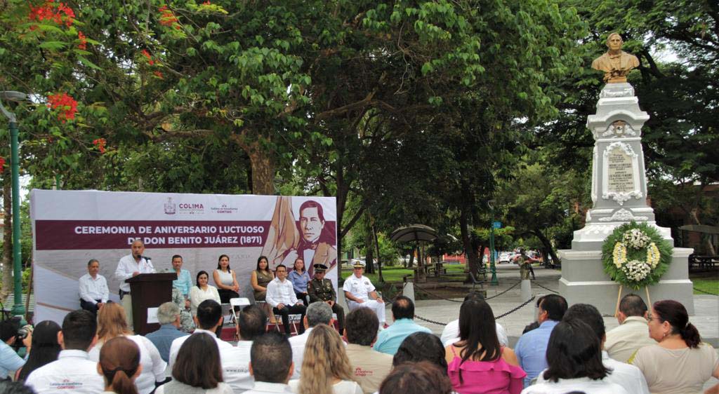 Con motivo del 151 aniversario luctuoso del Benemérito de las Américas, Benito Juárez García, se llevó a cabo la ceremonia conmemorativa en el Jardín Juárez de Colima, presidida por el secretario de Educación y Cultura del Gobierno del Estado de Colima, Adolfo Núñez González, en representación de la gobernadora Indira Vizcaíno Silva.