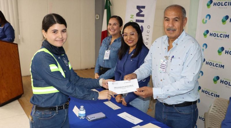 En las instalaciones de esta empresa se entregaron diez becas otorgadas por Fundación Holcim México A.C. a estudiantes que son descendientes en línea directa de las y los ejidatarios de Caleras, que actualmente cursan secundaria o bachillerato en instituciones públicas y privadas.