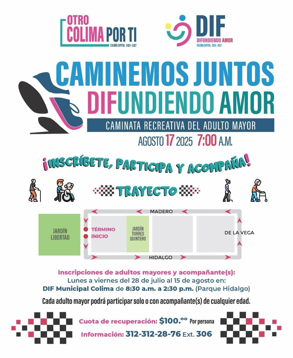 El 11 de agosto, visitarán la colonia Torres Quintero; el día 13, la colonia Antorcha Campesina; y el 15 de agosto en El Porvenir; y el 17 de agosto será una caminata con causa, denominada “Caminemos juntos”, a la cal están invitados todos, destacando que las inscripciones se pueden realizar con los adultos mayores y sus familias, para que los acompañen a vivir esta experiencia.
