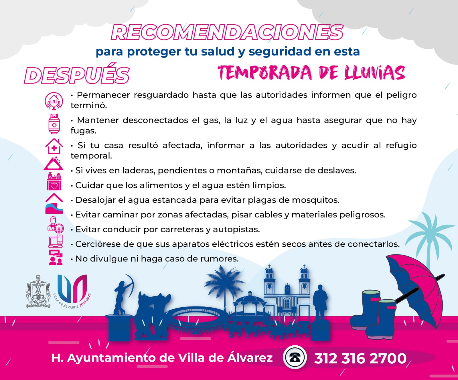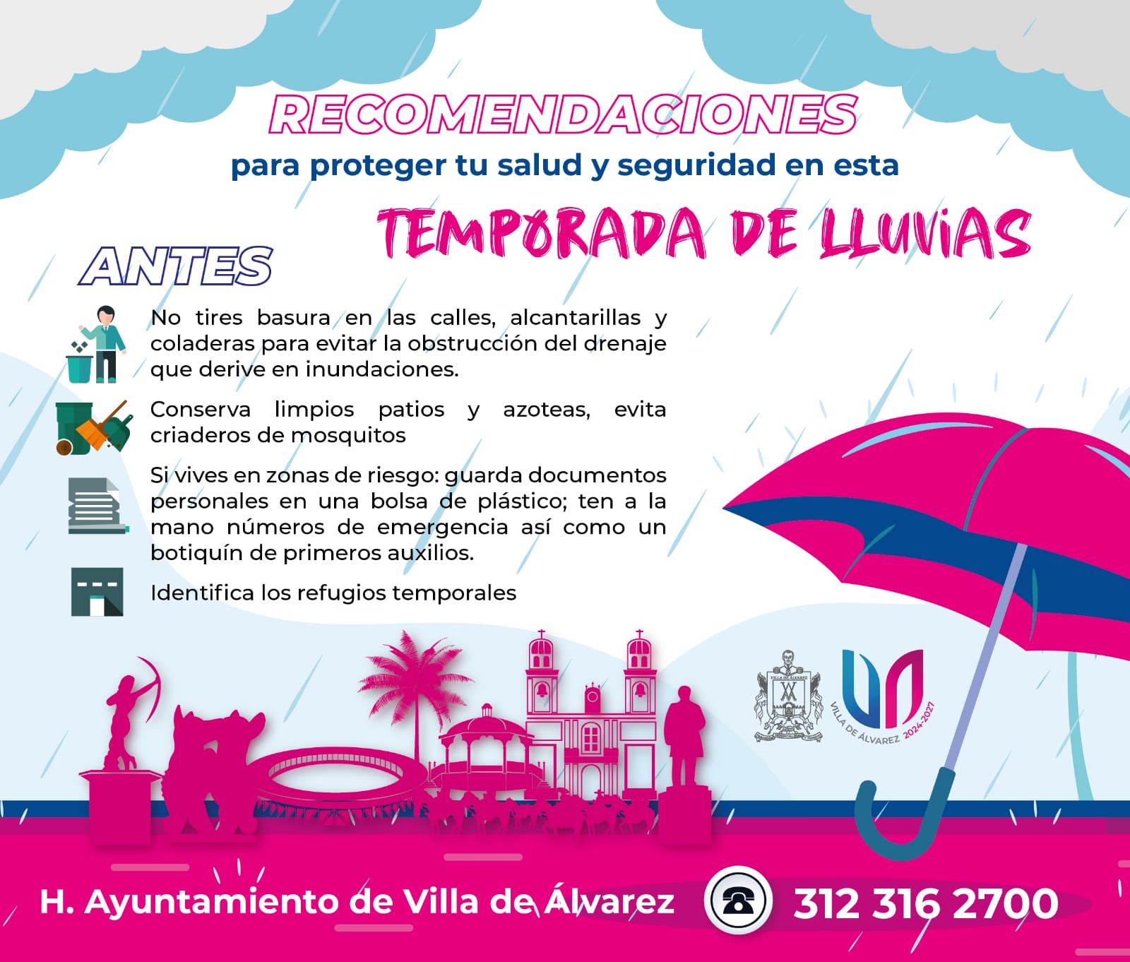El Ayuntamiento y PC de Villa de Álvarez recomiendan a la población no tirar basura en las calles, barrer el frente de viviendas y negocios y sacar los residuos en los días y horarios establecidos.