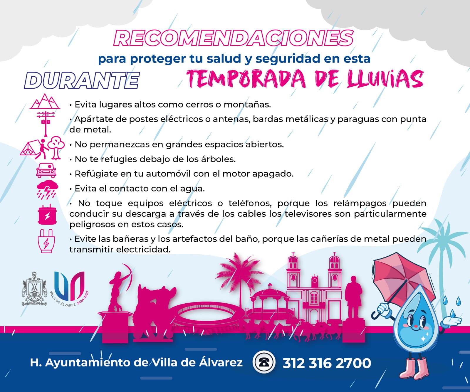 Villa de Álvarez, Col.- Previo a la presencia de la tormenta tropical «Bárbara», que este lunes podría convertirse en huracán frente a las costas de Colima y Michoacán, el Gobierno de Villa de Álvarez, a través de la Unidad Municipal de Protección Civil, emitió una serie de recomendaciones a la población.