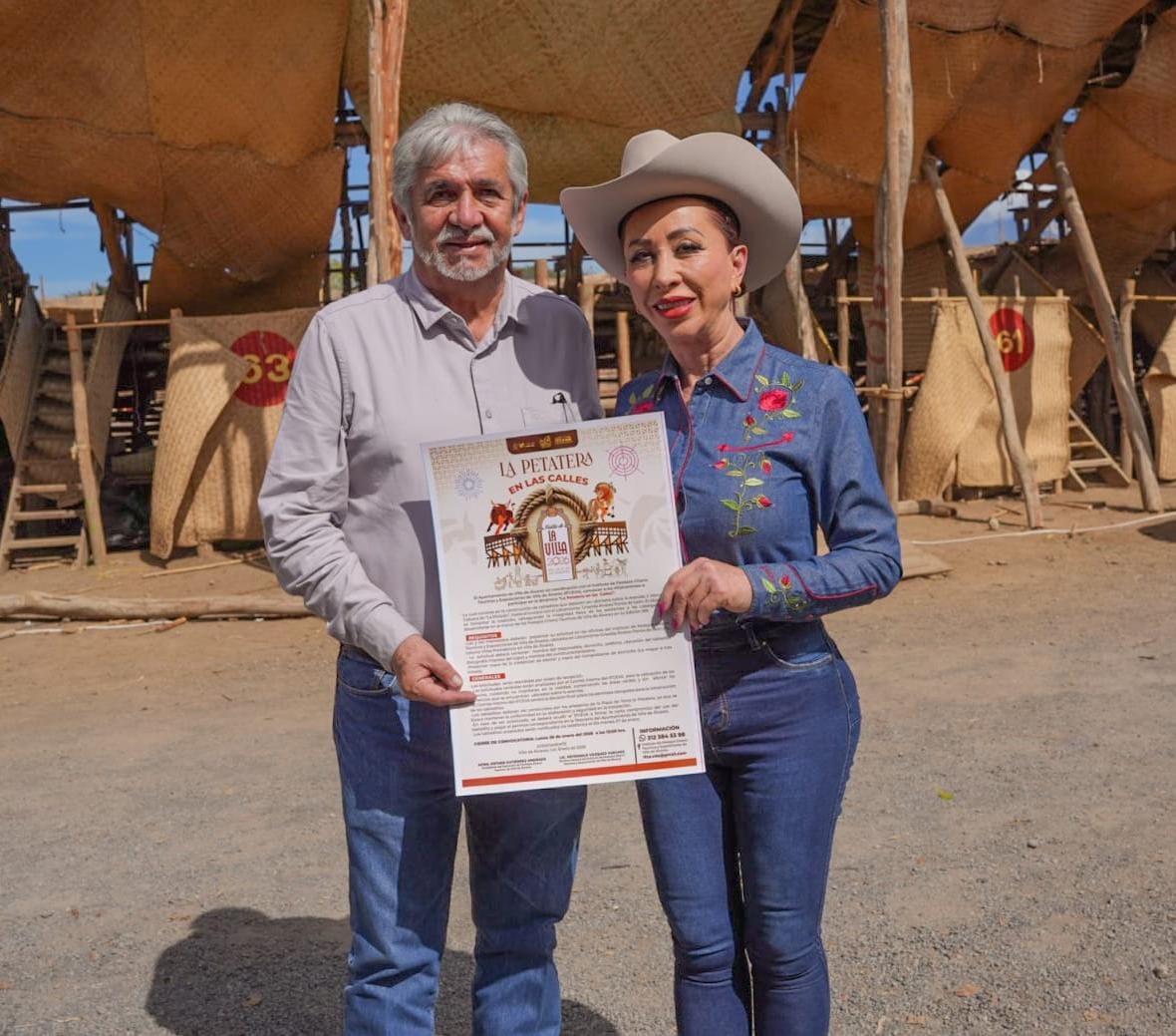 Villa de Álvarez, Col.- La Presidenta Municipal Tey Gutiérrez Andrade y el Director del Instituto de Festejos Charro Taurinos y Exposiciones de Villa de Álvarez (IFCEVA), Petronilo Vázquez Vuelvas, dieron a conocer la convocatoria “La Petatera en las Calles”, cuyo objetivo es contribuir con el fomento a la tradición de la construcción artesanal de tablados en la vía pública y a su vez que las familias puedan disfrutar de una manera cómoda las tradicionales cabalgatas.
