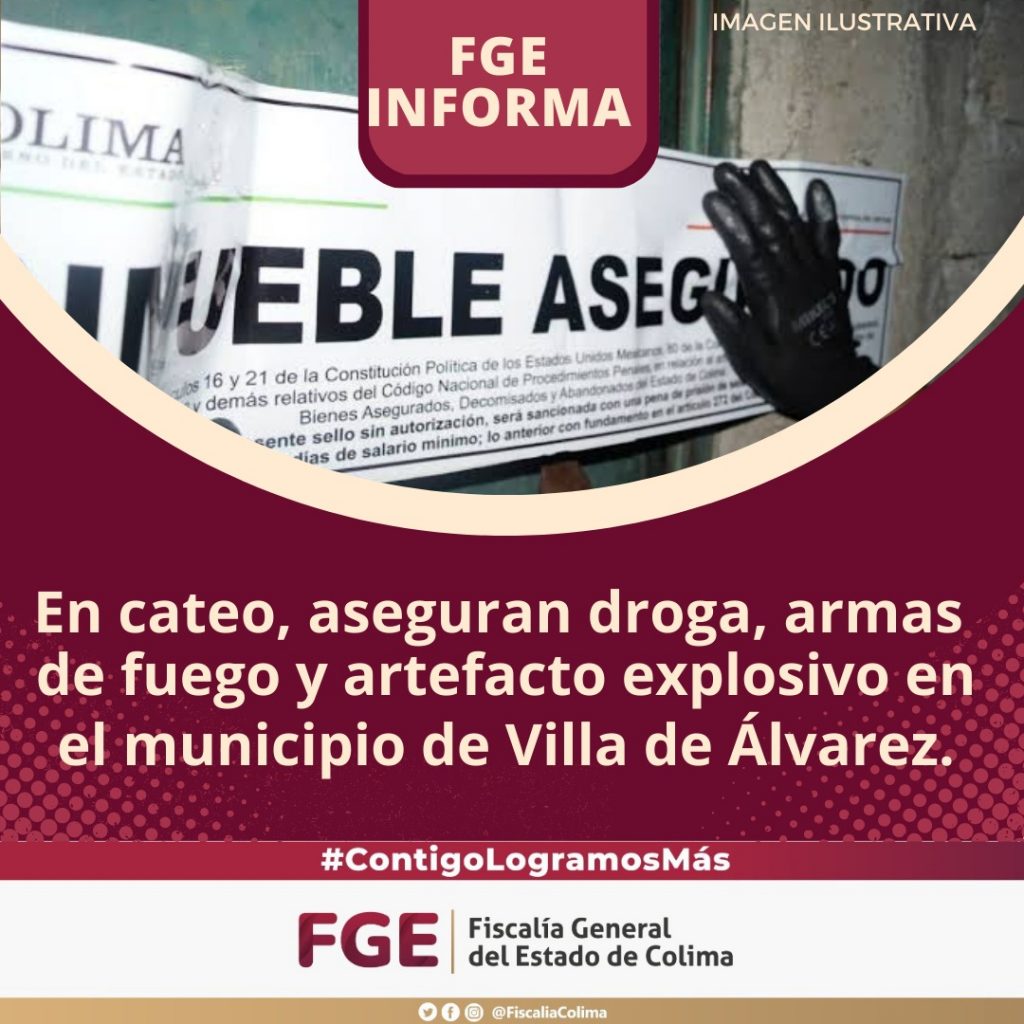 En cateo, aseguran droga, armas de fuego y artefacto explosivo en el municipio de Villa de Álvarez