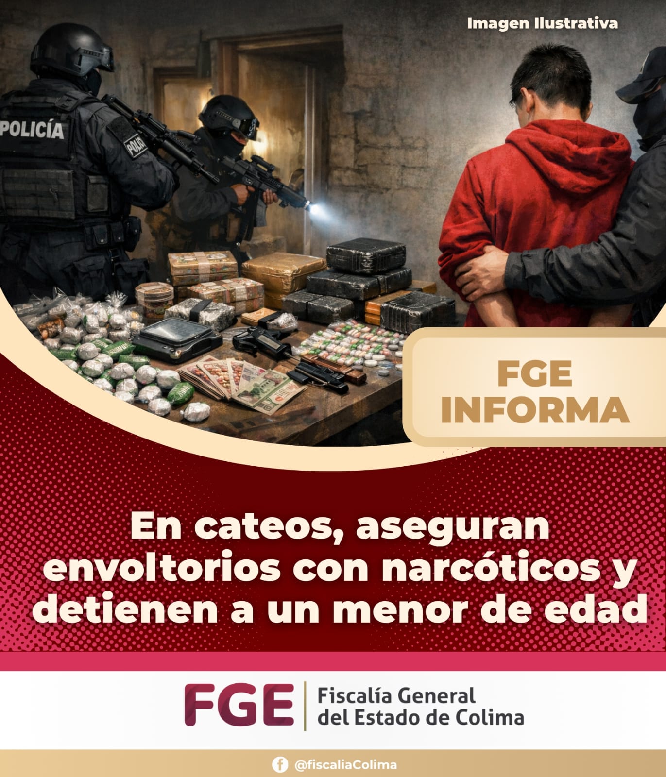 La Fiscalía General del Estado (FGE) ejecutó seis cateos en distintos municipios de la entidad, como parte de las acciones permanentes para combatir la delincuencia y fortalecer la seguridad de la población colimense.