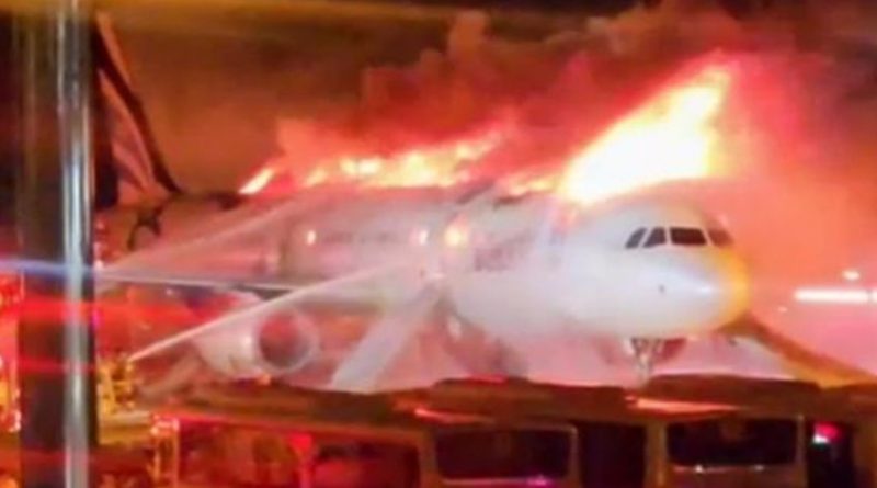 Avión con 170 pasajeros a bordo se incendia en aeropuerto mientras despegaba