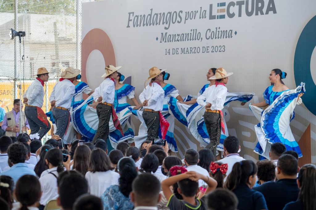 El Fandango por la Lectura abrió con la presentación del Ballet Folclórico del Centro Universitario de Bellas Artes en Manzanillo; el Semillero creativo de teatro de Tecomán ofreció un performance que motiva a la reflexión sobre los efectos de los apodos y el daño a la auto-estima en menores de edad, y concluyó con una lectura masiva del texto “He visto un árbol”, en la que participaron todas y todos los asistentes.