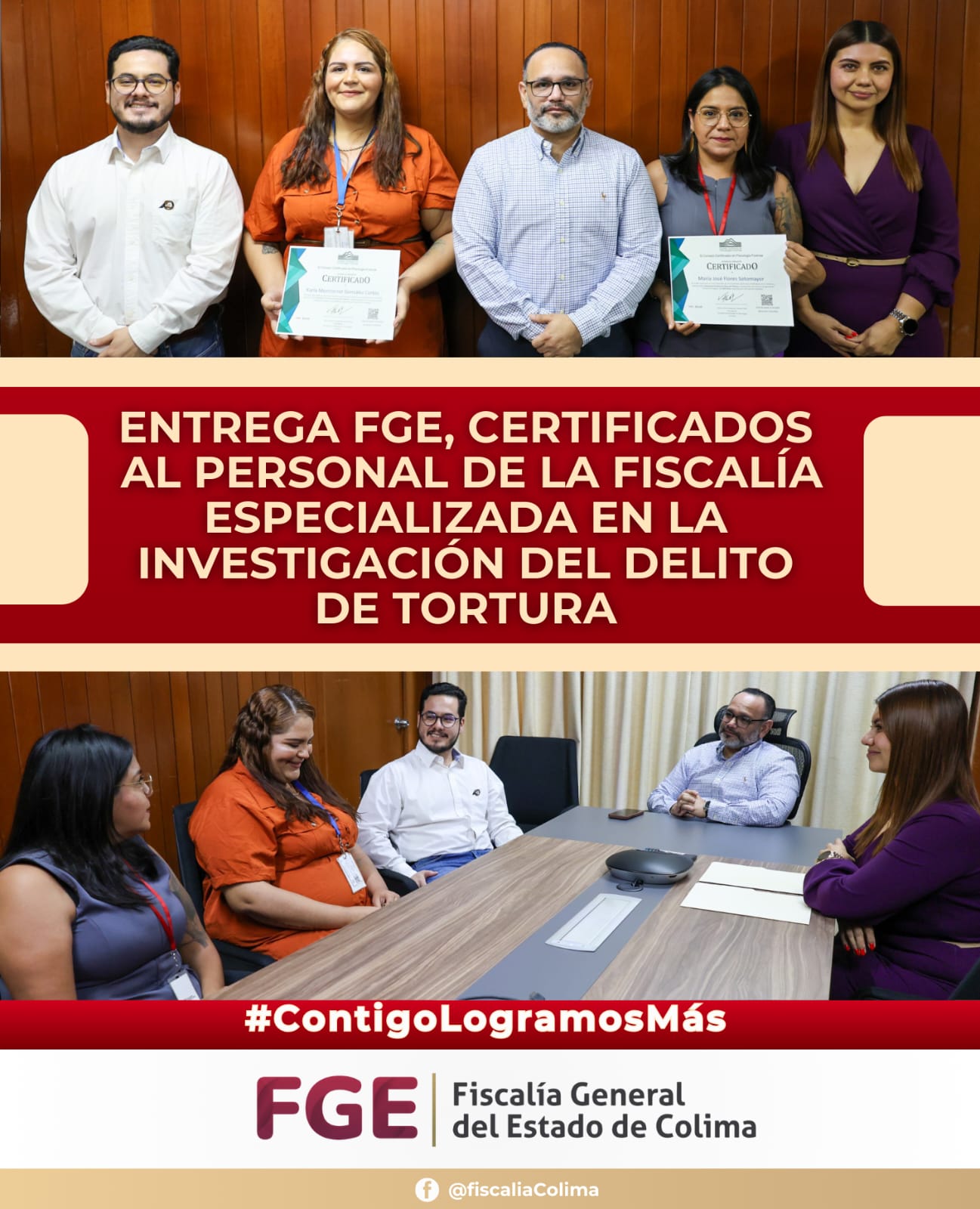 Entrega FGE certificados a personal deFiscalía Especializada en Investigación del Delito de Tortura