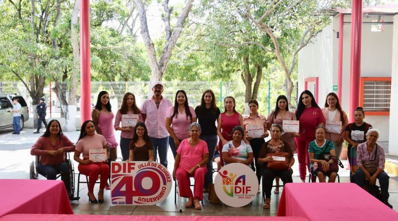 Villa de Álvarez, Col.- La Presidenta Tey Gutiérrez Andrade entregó de manera gratuita once vales a pacientes oncológicas de Villa de Álvarez para la realización de igual número de microbladings, técnica de micropigmentación para restaurar cejas afectadas por tratamientos contra el cáncer.