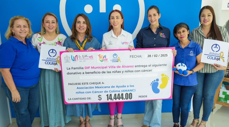 Villa de Álvarez, Col.- La Presidenta Municipal Tey Gutiérrez Andrade entregó a la Asociación Mexicana de Ayuda a Niños con Cáncer de Colima (AMANC), un donativo por 14 mil 444 pesos, que beneficiarán de manera directa a niñas y niños con cáncer.