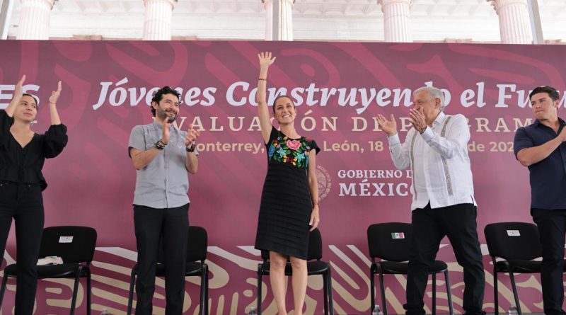 * “Vamos a seguir apoyando a Nuevo León (…) Vamos a hacer el tren México-Querétaro-San Luis-Coahuila-Monterrey-Nuevo Laredo”, anunció la Presidenta Electa * “A los jóvenes más educación, más trabajo, más apoyo porque este es un país para y por los jóvenes de México”, agregó * “A Claudia la conozco muy bien desde hace años y es incorruptible, es honesta”, afirmó el Presidente Andrés Manuel López Obrador