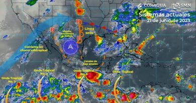 El Servicio Meteorológico Nacional (SMN) prevé que en algunos municipios del estado de Colima se podrían registrar lluvias fuertes con puntuales muy fuertes de hasta 75 milímetros, lo mismo para Jalisco, Michoacán, Oaxaca, Veracruz, Campeche y Yucatán.