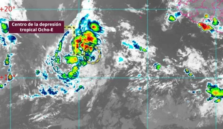 Durante la madrugada de este lunes 4 de agosto, se formó la Depresión Tropical Ocho-E en el océano Pacífico, de acuerdo con el Servicio Meteorológico Nacional.