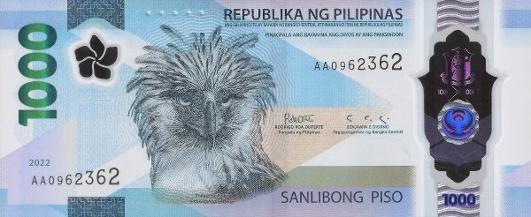 El billete de Filipinas muestra a un águila en peligro de extinción y a una sampaguita, catalogada como flor nacional.