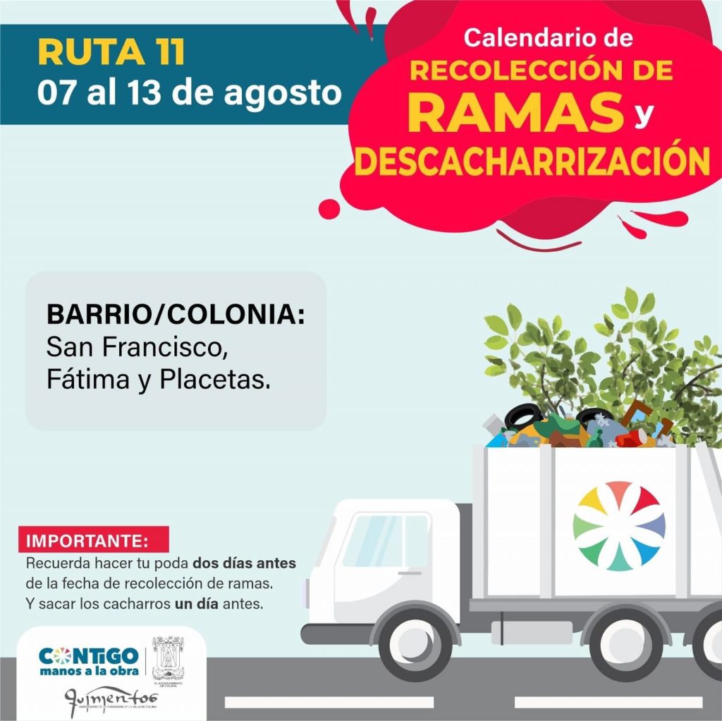 Recuerda SOLO PODAR TUS RAMAS O SACAR TUS CACHARROS cuando la ruta pase por tu colonia 🤝 Entre todas y todos sumemos a construir el municipio que queremos.