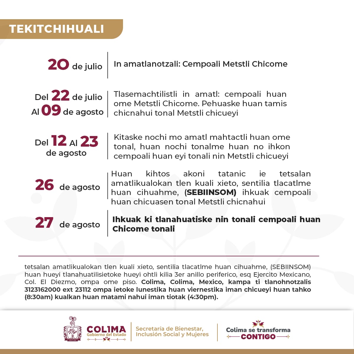 La Secretaría de Bienestar, Inclusión Social y Mujeres (Sebiinsom) del Gobierno del Estado de Colima, informa que este viernes 9 de agosto cerrará los registros para participar en la Convocatoria Pública 2024, para mujeres y hombres pertenecientes a pueblos o comunidades indígenas en la entidad, que deseen participar en el proceso de designación de representantes de sus respectivos núcleos comunitarios, en el Consejo Estatal Indígena.