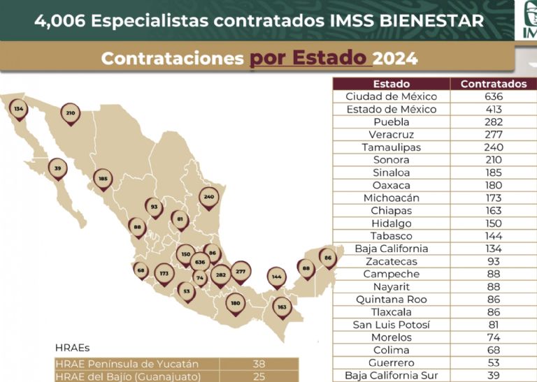 Aunado a ello, están las entidades con mayor cantidad de especialistas derivado de este programa, donde la Ciudad de México (CDMX) y Estado de México (Edomex) encabezan la lista, mientras que nueve no figuran en el listado oficial: