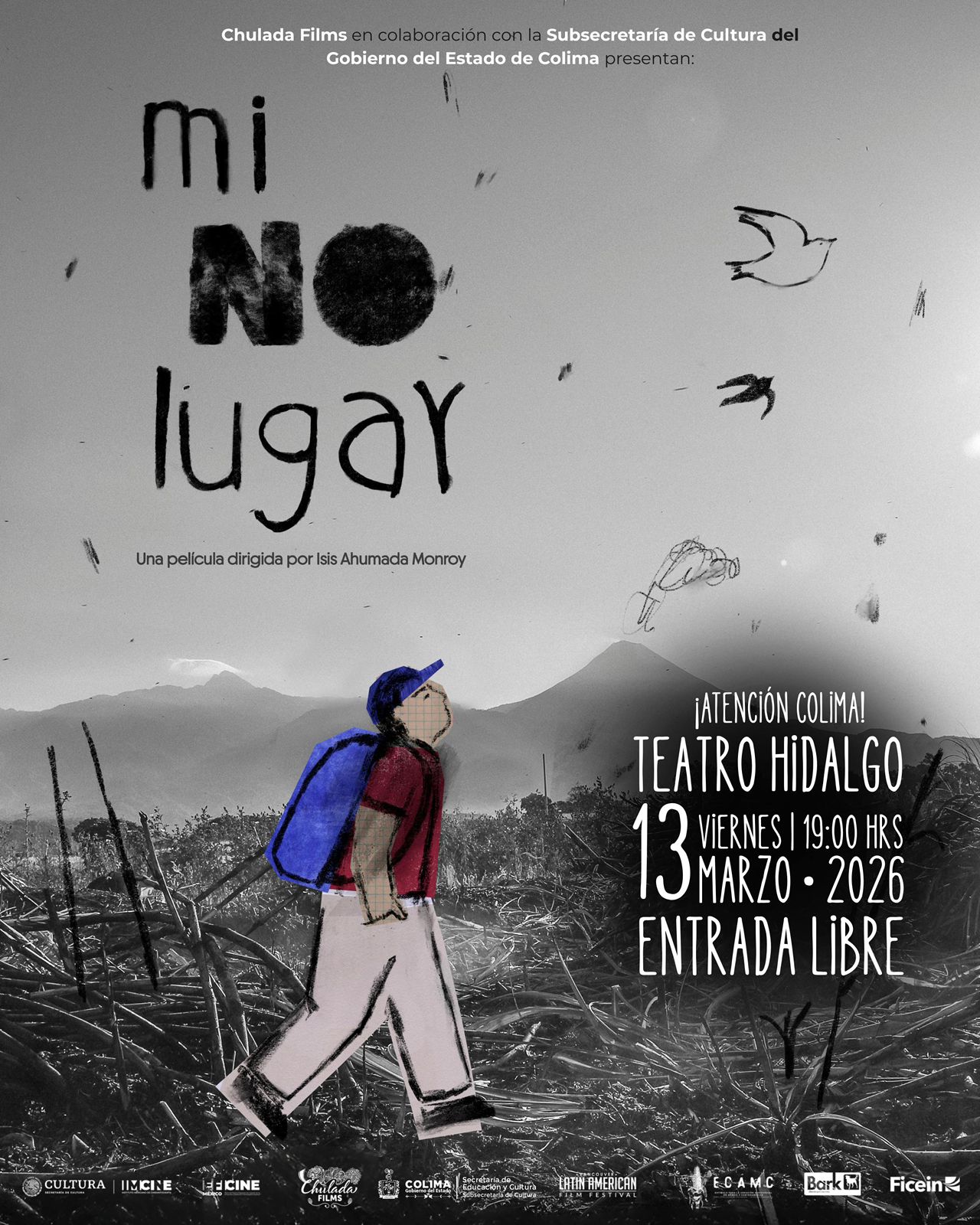 El documental ‘Mi No lugar’, dirigido por la cineasta colimense Isis Ahumada Monroy y producido por Chulada Films, tuvo un exitoso estreno con sala llena en la Cineteca Nacional de la Ciudad de México, con lo que inicia un recorrido de marzo a junio por más de 50 salas de cine independiente en todo el país, ofreciendo junto la Subsecretaría de Cultura del Gobierno del Estado de Colima, una función especial el 13 marzo en el Teatro Hidalgo a las 19:00 horas. Dicha función contará con la presencia de la directora del filme para dialogar con el público.