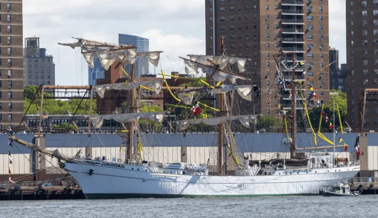 El incidente ocurrió la noche del sábado cuando el Cuauhtémoc, con poco más de 180 personas a bordo, se preparaba para partir hacia Islandia, tras una visita a Nueva York que comenzó el 13 de mayo como parte de su misión de diplomacia pública y formación naval.