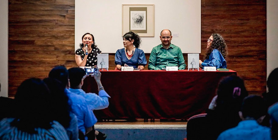 En su intervención, Sandra Uribe Alvarado agradeció a la Universidad de Colima por el esfuerzo realizado a través de la Dirección General de Publicaciones para hacer realidad esta obra, a las direcciones de las 4 facultades por atender su solicitud para trabajar con sus estudiantes y, de igual manera, a las y los 52 jóvenes que conformaron los grupos reflexivos para el trabajo de campo. “Su mirada en torno a cada una de las esculturas, sus comentarios y el diálogo al interior de los talleres fue la sustancia que le dio vida al texto de este libro”.