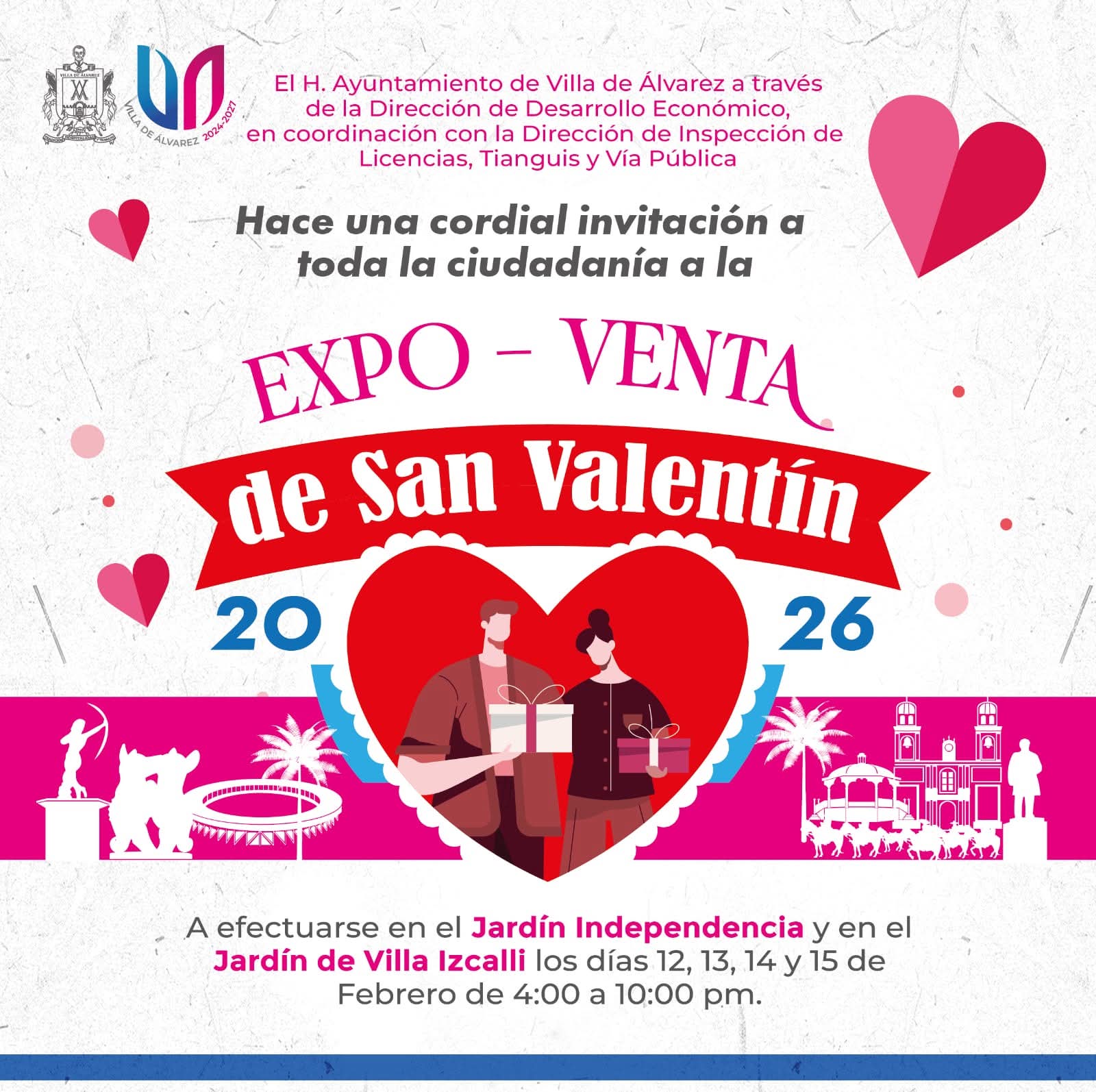 El H. Ayuntamiento de Villa de Álvarez te invita a la Expo-Venta de San Valentín 2026. Ven por el regalo ideal y participa para ganar increíbles premios.