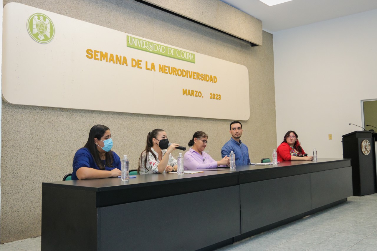 Addí Espinoza González, Diana Laura Gallardo Moreno, Cristina Figueroa Shutter, orientadores educativos de la Universidad de Colima y Ana Claudia Moy López, orientadora educativa de la UNIVA participaron en el conversatorio: “Retos y Oportunidades en la atención a las neurodiversidades: Aportes desde la Orientación Educativa”, realizado en el auditorio de Psicología del campus central, en el marco de la II Semana de la Neurodiversidad