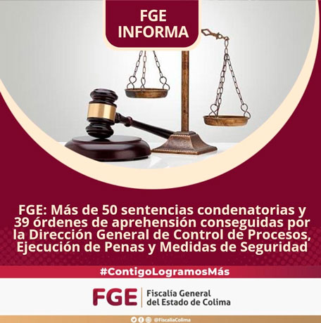 La Fiscalía General del Estado (FGE) mediante la Dirección General de Control de Procesos, Ejecución de Penas y Medidas de Seguridad adscrita a la Vice Fiscalía de Justicia Familiar y Civil, Soluciones Alternas, Prevención al Delito y Atención a Víctimas, del mes de noviembre del pasado año a julio de la presente anualidad, reporta los trabajos efectuados por su personal y en beneficio de la sociedad colimense, quienes fueron víctimas de algún delito. Lo anterior dentro de la campaña “Entérate, logros relevantes de la FGE”.