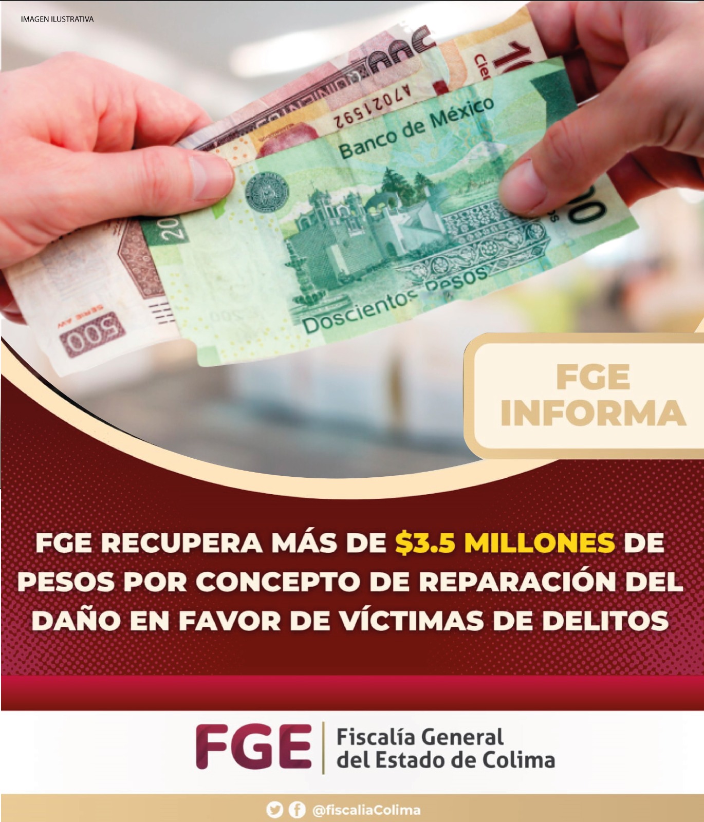 FGE recupera más de $3.5 millones de pesos por concepto de reparación del daño en favor de víctimas de delitos